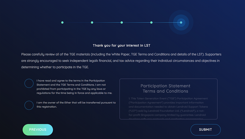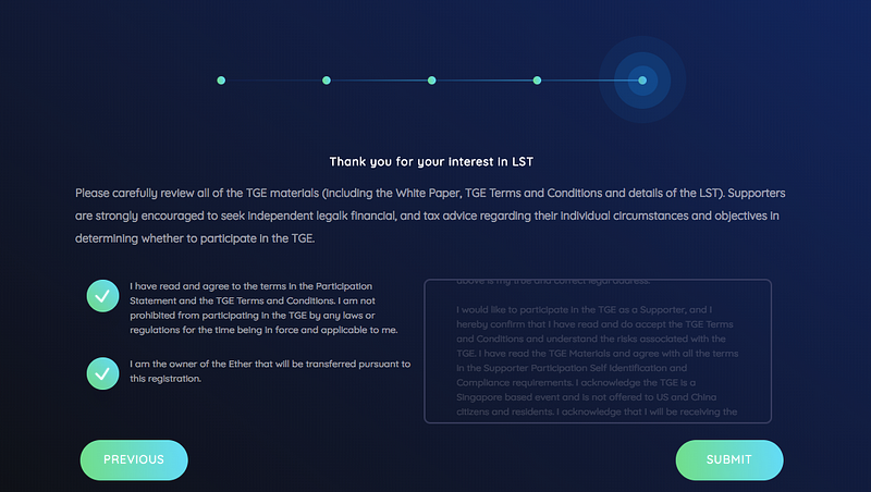 This is an important part of the process. Please ensure that you have reviewed all essential TGE material, and read and understood all the terms and conditions. Please take legal, financial and tax advice as required.