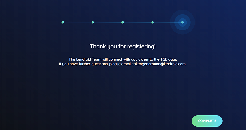 The official registration link is tge.lendroid.com. We will notify when it is open through our Telegram Announcement channel, and through the official Lendroid Twitter handle.